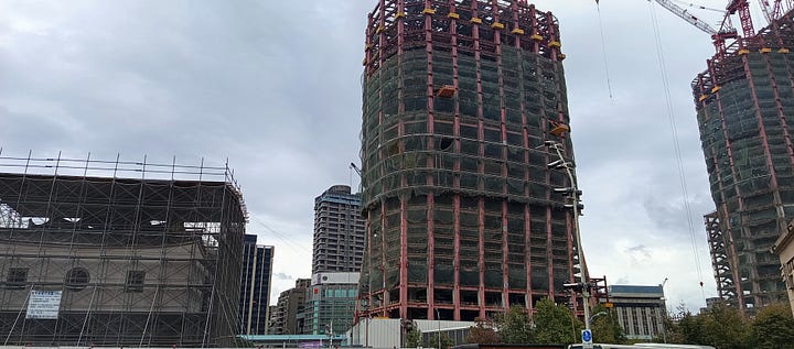 Walking around Taipei for the first time since COVID, I am noticing new and ongoing high rise construction around the city. Not China property bubble levels of new construction as the construction I am seeing looks more sustainable with the most noticeable being two massive high-rises going up by or over the Airport MRT station by the Taipei Main Train Station (with one of the old city gates under restoration) and something getting built on a block of land next to Taipei 101: